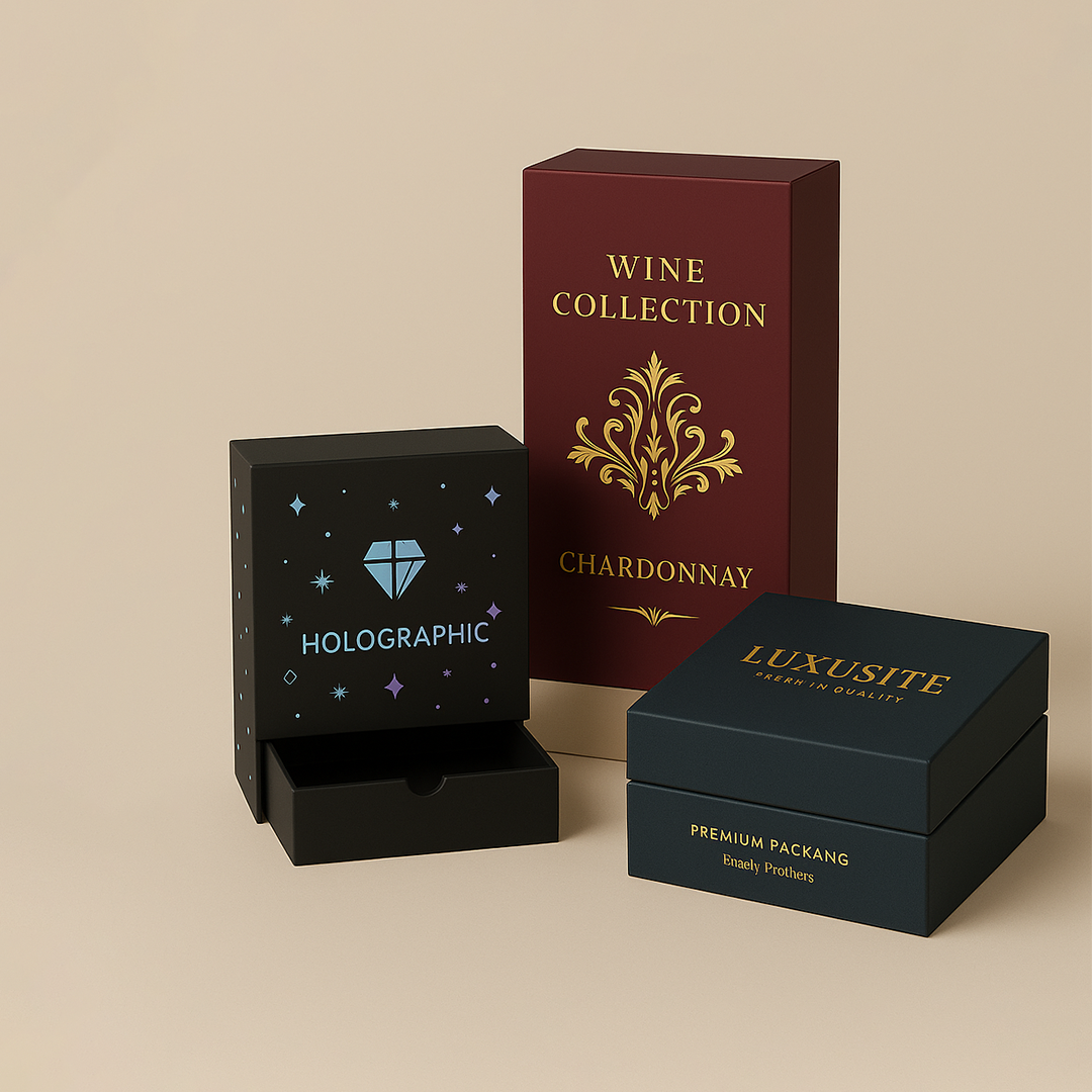 - Colors and Finishes: With the use of PMS (Pantone Matching System) and CMYK (Cyan, Magenta, Yellow, Black) printing technologies, we ensure precise color reproduction. Whether you want rich, vibrant hues or subtle pastel shades, we offer a full spectrum of color options. High-quality finishes such as matte, gloss, soft-touch coating, and spot UV also help elevate the box’s visual appeal.